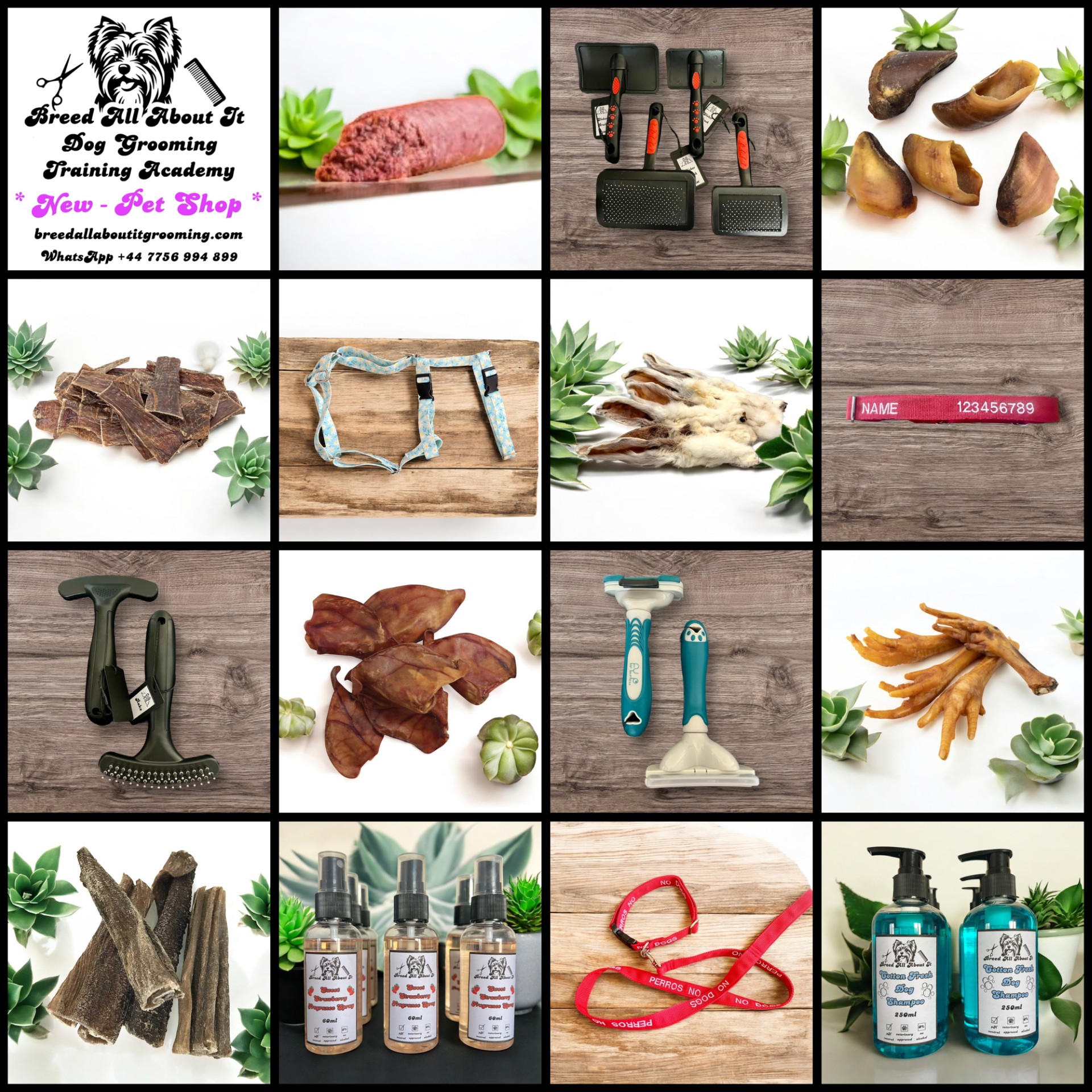 Grooming Products – brushes, combs, shampoos, and conditioners to keep coats healthy, shiny, and tangle-free.